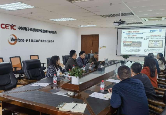 陈澜代表卫士通公司对我校一行来访表示热烈欢迎。她介绍了公司开展及运行的业务,并就联合共建先进密码技术与系统安全四川省重点实验室、共办网络安全知识与技能竞赛、网络安全培训及社会服务、联合申报科研项目等方面进行了深入交流。卫士通公司各部门负责人分别就各自所负责业务与学院教学科研合作进行了深入交流、对如何实施进行了讨论,并指定了后续推进相关工作的联络人。