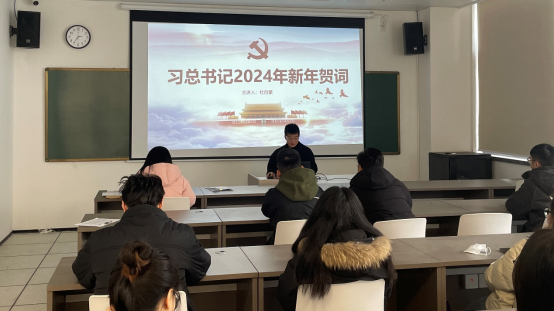 本次生活会由预备党员杜自豪带领大家学习《习总书记2024年新年贺词》。