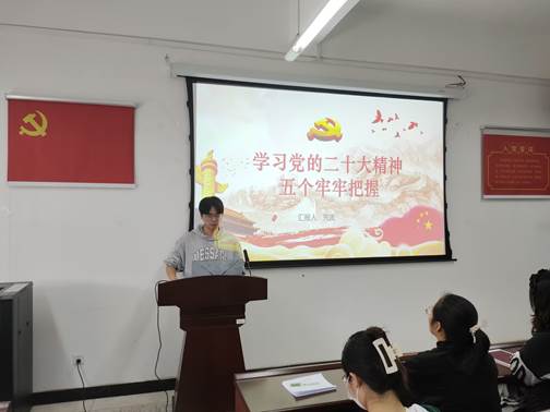 为学习贯彻党的二十大精神,本次组织生活会的主题紧密结合中国共产党第二十次全国代表大会。会议开始后,信息安全一二班党小组杨冰玉同志、信息安全三四班党小组吴炬扬同志、信息安全五六班党小组戴尔森同志、信息安全实验班党小组先波同志分别代表各自所在的党小组进行分享。