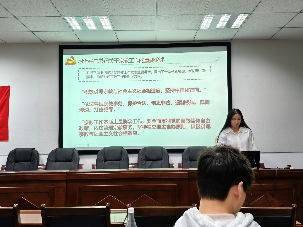 会议伊始,主持人朱海鹏首先对习近平总书记关于民族宗教工作的系列重要讲话精神的基本情况和重要意义进行了介绍。学习分享环节,各个党小组代表依次分享,学习讨论了新时代怎样认识宗教、怎样处理宗教问题、怎样做好党的宗教工作以及如何抵御宗教渗透等重大理论和实践问题等重要内容。