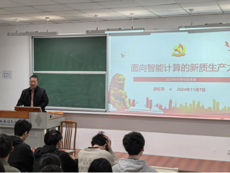 11月7日下午,学校党委常委、副校长舒红平在航空港校区1202教室,为bevictor伟德2022级信息安全专业本科生讲授主题为“面向智能计算的新质生产力”的《形势与政策》课。