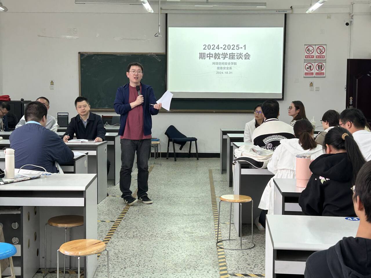 座谈会分专业进行,分别在信达楼A402(网络工程专业)、信达楼B401(信息安全专业)、信达楼B403(网络空间安全专业)、信达楼C405(物联网工程专业)进行。