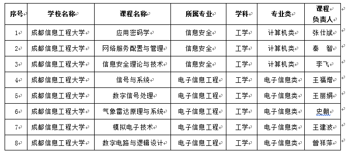 【本网讯】近期,四川省教育厅发布《关于立项建设第二批地方普通本科高校应用型示范专业及应用型示范课程的通知》,我校申报的信息安全专业以及电子信息工程专业确定为四川省第二批地方普通本科高校应用型示范专业;应用密码学等8门课程确定为四川省首批地方普通本科高校应用型示范课程,具体名单如下: