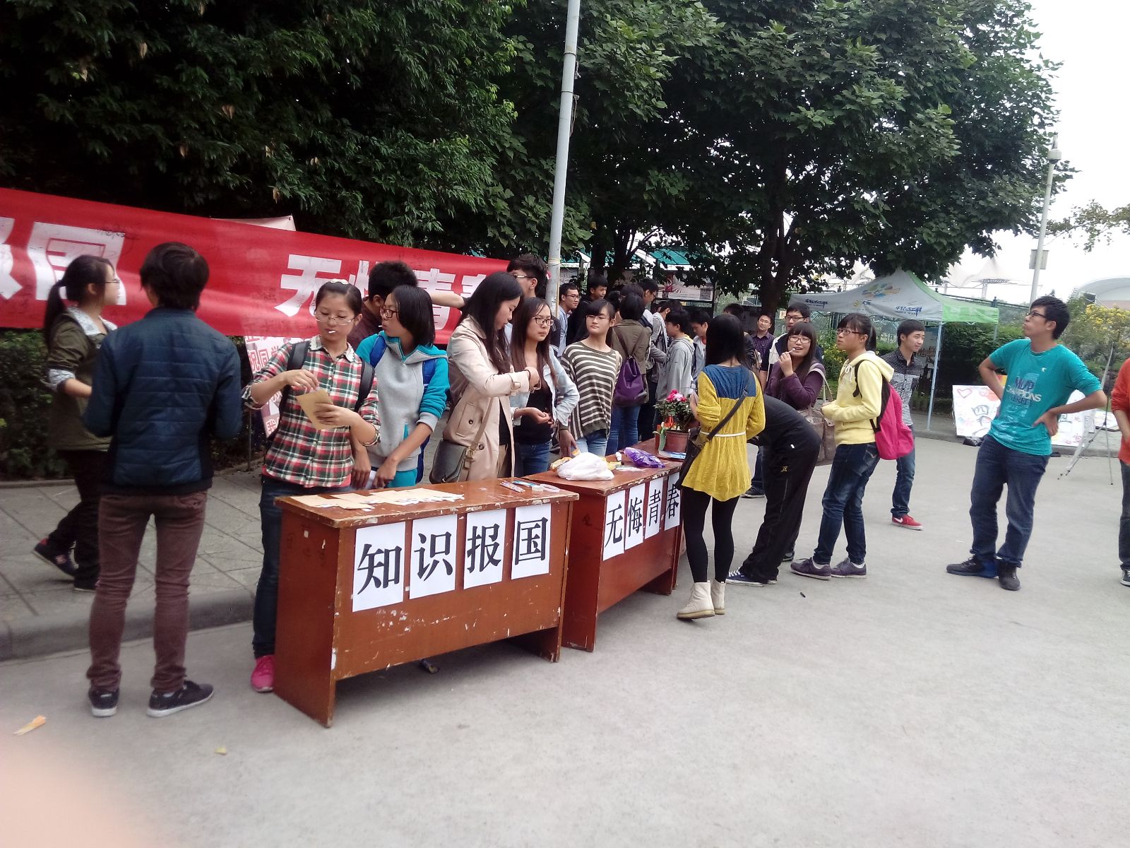10月25日,网络工程学院分团委学生会组织部联合其它几个学院在学校银杏大道顺利开展了以“知识报国,无悔青春”为主题的团日活动。此次活动意在宣传党团知识,呼吁同学们学好科学文化知识,为建设伟大祖国而努力奋斗。