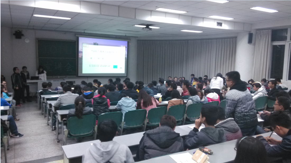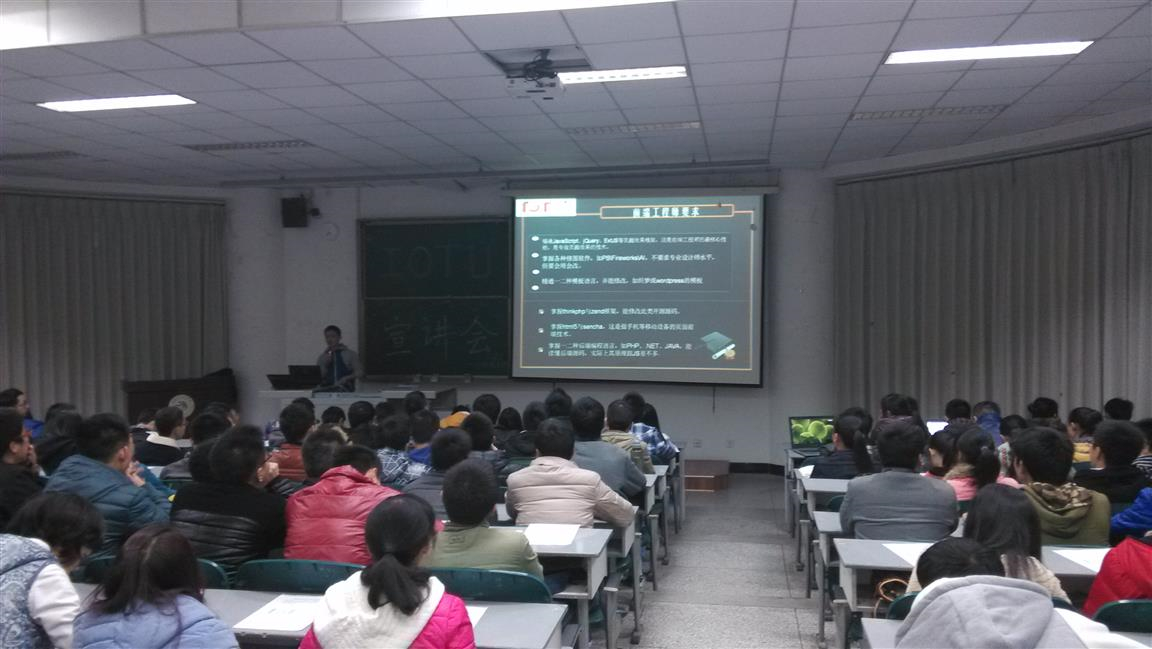 2013年12月2号晚上七点半,由网络工程学院“IOTU”技术小组及分团委学生会学习部联合举办的专业文化普及讲座在4213拉开帷幕。出席此次会议的人员主要有“IOTU”技术小组和学习部全体成员,以及部分大一新生。
