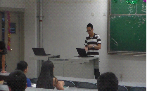 交流会伊始,演讲的是来自11级计算机工程专业的周承林学长,周学长首先给大家讲解了C++和JAVA的差异,然后用自己的作品和亲身经历表述了他对JAVA的认识及理解。接着,来自我院的大三学长冷炜斓学长又着重为大家讲了C++的有关知识,冷学长首先也展示了自己的木马作品,然后以轻松幽默的口吻讲了JAVA和C++的不同,最后又给大家阐述了C、C++以及C#的区别和联系。交流会持续了2个小时,最终在主持人的结束语中落下了帷幕。