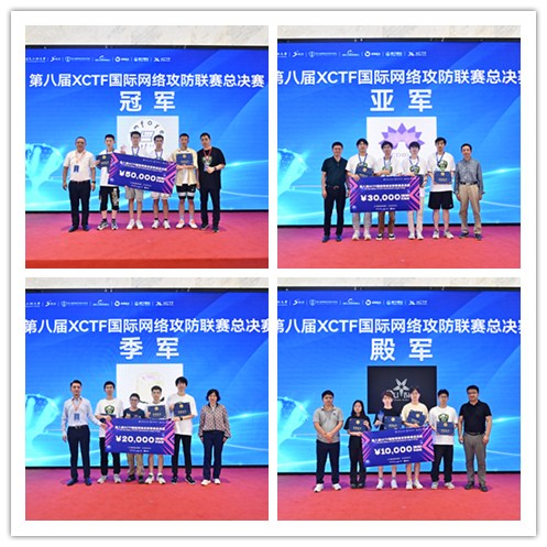 2024年6月23日下午16:00比赛圆满落幕,第八届XCTF国际网络攻防联赛总决赛冠军得主正式决出。国防科技大学b3f0re战队一路过关斩将、战至最后,成功问鼎冠军,清华大学Redbud战队荣获亚军,联合高校S1uM4i战队获得季军,北京邮电大学天枢Dubhe战队排名第四。