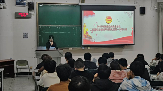 我们怀着对党、团的热爱。本次开班典礼在周静影精彩的主持中顺利召开,文静同学作为代表带领全体学员重温入团誓词,学员齐唱团歌,团委副书记李骏轩为全体学员致培训开幕词,组织部负责人丁海峰围绕“中国共产主义青年团知识”的主题展开第一次团课。