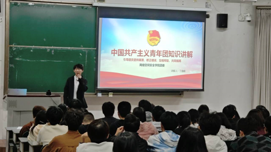 丁海峰同学首先向学员们详细介绍了团的发展历史,其次强调了学员对共青团应有的认识,要有坚定的共产主义理想和信念,要有优秀的品质和道德,要有品学兼优的素质和扎实的文化基础,成为学校学生中的表率和楷模。