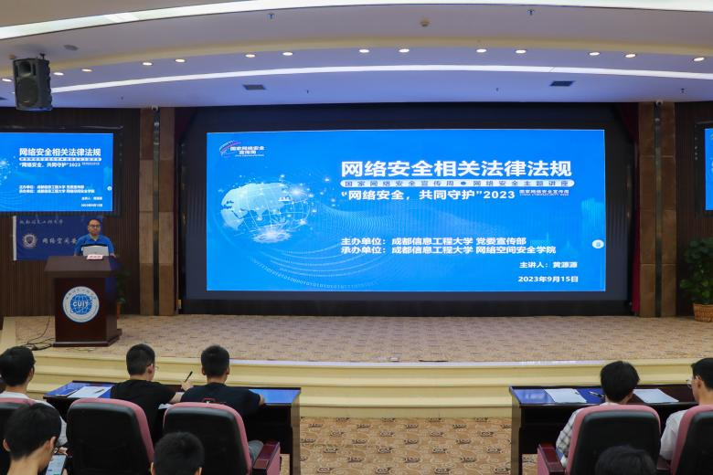 为了深入宣传《中华人民共和国网络安全法》《中华人民共和国数据安全法》《中华人民共和国个人信息保护法》《中华人民共和国关键信息基础设施安全保护条例》等重要法律法规、政策文件、国家标准,bevictor伟德于9月15日在国际会议厅开展了“网络安全,共同守护”网络安全主题讲座。全校共600余名同学通过第二课堂报名等方式参与了讲座。