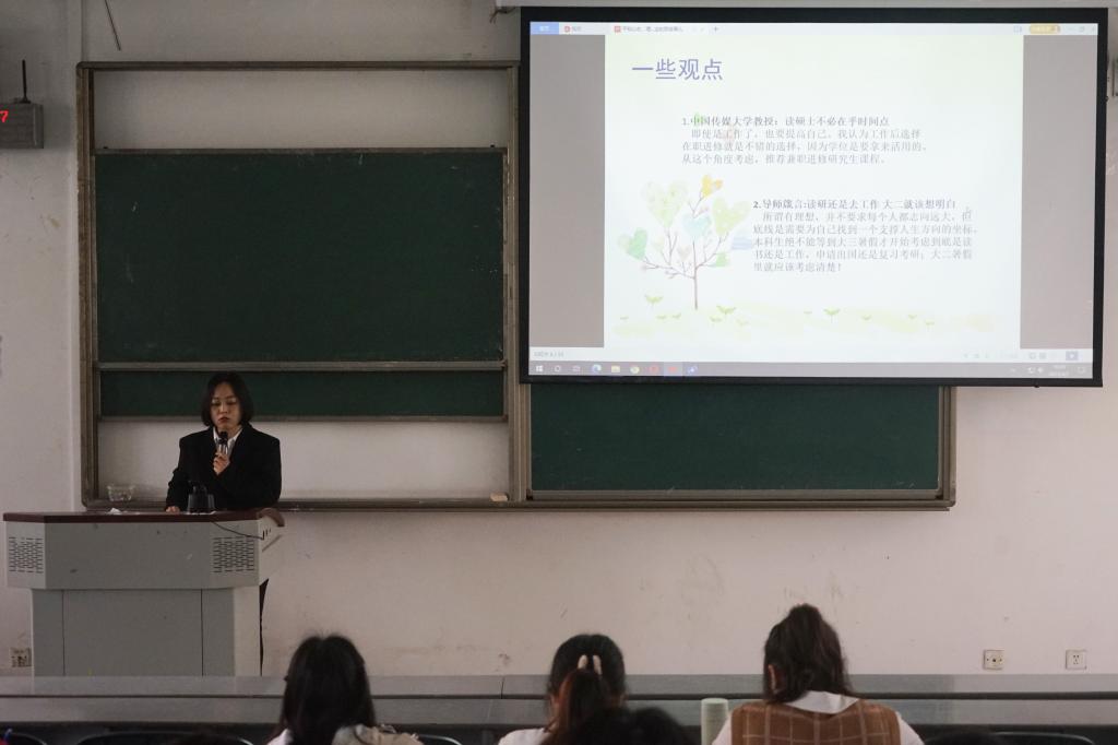 4月7日上午十时二十分,由bevictor伟德举办的“平和心态,理性选择——关于考研与就业那些事儿”讲座在H4213教室成功开展。该讲座由心理健康教育中心的孙光老师主讲,参与讲座的人员包括学院心理委员及部分大一、大二、大三同学。