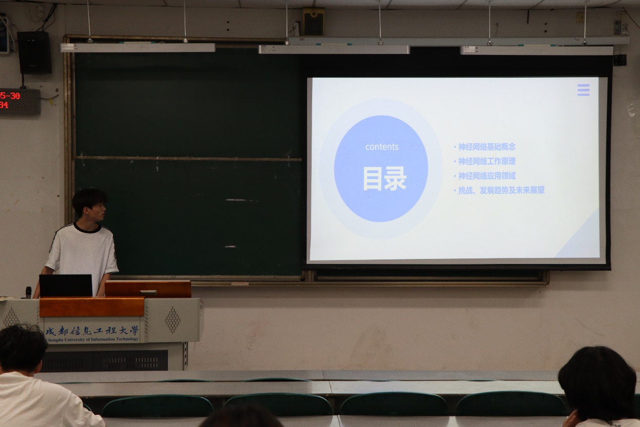 然后是陈宇轩同学讲解了关于神经网络的知识,详细的介绍了神经网络的基础概念,工作原理,应用领域,以及未来的挑战和发展。