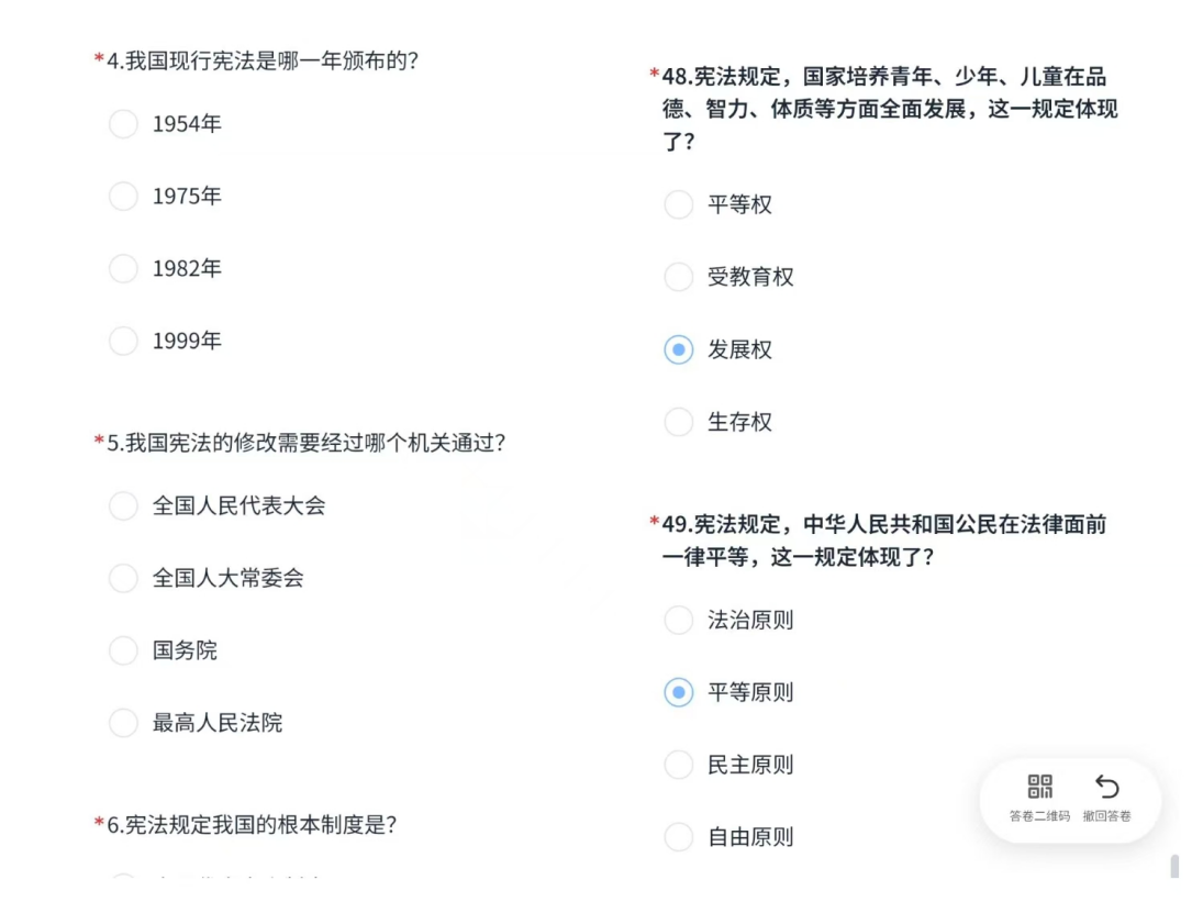 竞赛通过线上答题平台开展,共设置49道题目。问答内容紧扣宪法主题,涵盖宪法的历史沿革、基本原则、公民的基本权利与义务等多个方面。经过激烈角逐,最终评选出了两名优秀学生代表,他们将代表学院参与校级宪法系列比赛,力争取得优异成绩!